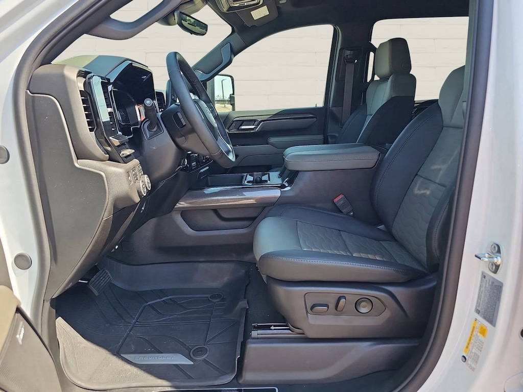 INTERIOR OPTIONS: on this 2025 Chevrolet Silverado 2500HD for sale include: Leather Seats, Heated Steering Wheel, Automatic Climate Control, Air Conditioned Front Seats, Heated Rear Seats, Dual Power Seats, Heated Front Seats, Power Drivers Seat, Adjustable Lumbar Seats, Memory Seats, Memory Mirrors, Steering Wheel Audio Controls, Sliding Rear Window, Pass-Through Rear Seat, Bucket Front Seats, Air Conditioning, Multi-zone Climate Control, Auto Dimming R/V Mirror, Floor Mats, Bench Seats, AM/FM Stereo, Rear Window Defroster, Tilt Steering Wheel, Auxiliary Audio Input
